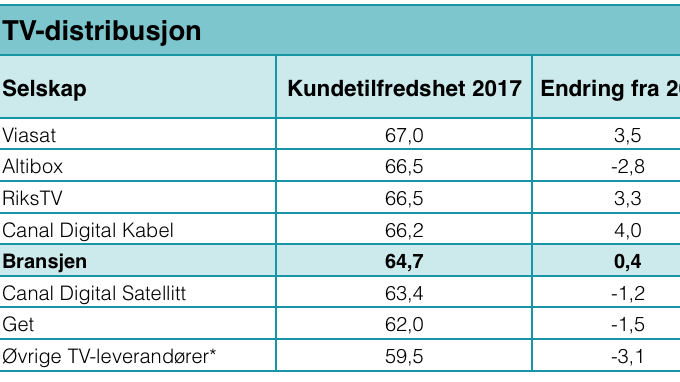 Årets måling av TV-distributørene viser at det kun er små forskjeller i kundeopplevelsen blant de ulike tilbyderne. Det er kundene til Viasat som kommer best ut i denne målingen, men det er kun minimale forskjeller mellom Viasat, Altibox, RiksTV og Canal Digital Kabel.