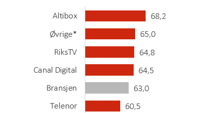 Tilfredsheten med tv-distributørene er lav, og den er særlig lav blant kunder som har fellesavtale via et borettslag eller sameie. 2 av 3 kunder svarer at deres abonnement er en del av en slik fellesavtale, og mange av disse mener at deres valg av tv-leverandør er påtvunget.