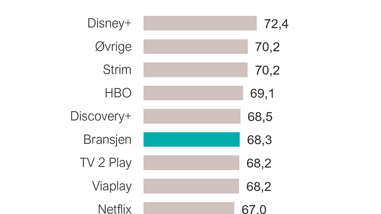 Flere av de andre strømmeleverandørene kan vise til en positiv utvikling, men i år er det Disney+ som kan skilte med de mest fornøyde strømmekundene.
