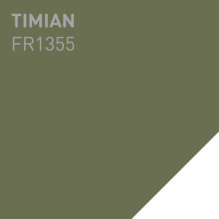 Timian er en farge som representerer det myke og nære, skog og natur. Den har en egen frodighet over seg. Perfekt til ton i ton, komplementærfarger og ikke minst til treverk.
