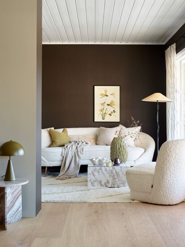 – Rolige naturfarger i gråtoner, beige og kremfarger gir en egen ro og harmoni – og ikke minst passer de perfekt inn til det moderne formspråket. Ofte er det klare farger som vinner frem i det moderne. Med brun og beige sammen, opplever vi dette som nytt og lekent. Et spennende nytt landskap trer frem. I Fargerike har vi trukket frem dette i Årets Farge 2024 – Ønsketegn, en dyp mørk brunfarge.