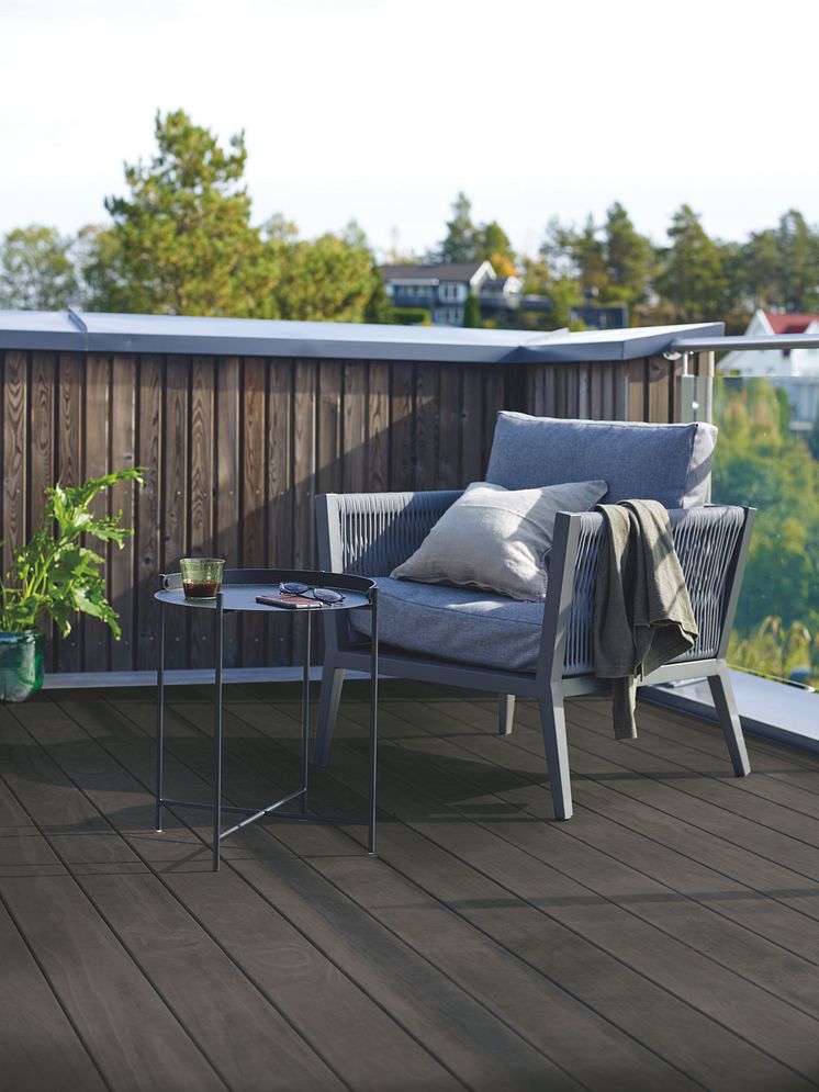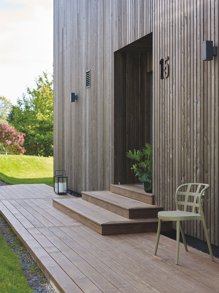 Ofte er det jo litt tradisjonelle farger vi velger ute, både på fasade og terrassedekke. Men de siste årene har vi sett en endring av fargebruk også på yttervegg. I den forbindelse er det naturlig å få nye, vakre farger å velge i. Norges fargepalett snur fra det grå mot det mer fargerike. Brune toner kommer mer og mer tilbake, kan Henningsen fortelle.