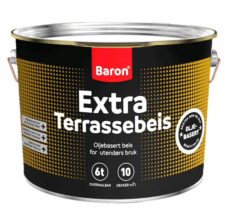 Fargerikes egen terrassebeis kommer også i ny drakt, men med samme gode innhold. Baron terrassebeis kan du få både som vannbasert og oljebasert beis. Spør oss om hva som passer på din terrasse.