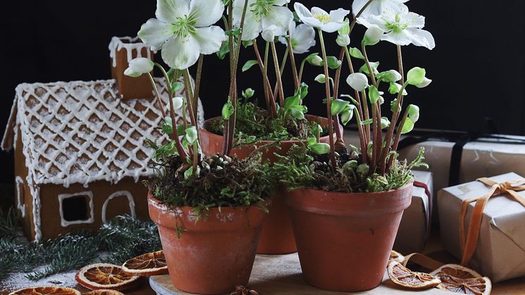 En av de riktig gamle juleblomstene som har fått sin renessanse, er julerosen. Helleborus niger er den vanligste med kremfargede blomster, og Helleborus orientalis har rødlilla blomster. I tillegg finnes det varianter med mer grønnaktige blomster og rosatoner. Denne planten er dessverre ganske giftig, så barnefamilier og hundeeiere bør finne andre favoritter. Julerosen er hardfør mot kulde og kan stå på trappa selv når det er kuldegrader. Bruk den gjerne som borddekorasjon sammen med snittblomster.