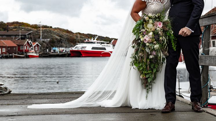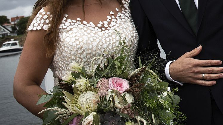 Noe vi ofte ser på brudebildene er at brudebuketten holdes for høyt, og den kan da skjule både den nydelige brudekjolen eller dressen og konkurrere om oppmerksomheten med det lykkelige paret. Vi prøver alltid å minne brudeparet om at blomstene skal være en ramme og et tilbehør som løfter øyeblikket," sier blomsterdekoratøren. "Men vi blir selvfølgelig glade når blomstene får den oppmerksomheten de fortjener! Vi legger all vår kunnskap og lidenskap for blomster i å skape vakre brudebinderier, så det er en glede når brudeparet ønsker å vise dem frem," avslutter Renate stolt.