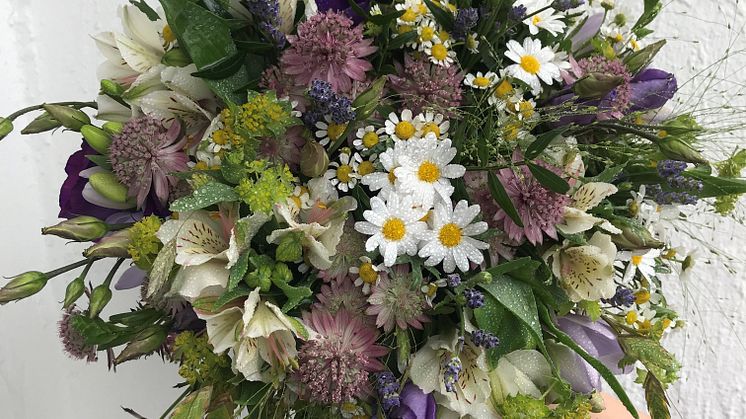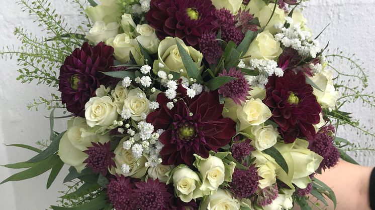 "Mange velger en stil som ser litt tilfeldig sammensatt ut, hvor buketten ikke er så stramt bundet", forklarer blomsterdekoratør Renate Grav Andersen som eier Floriss Kellners i Bodø. - Nesten som om man hadde plukket blomstene selv i en blomstereng. Mye grønt i brudebuketten gir et vilt og naturlig uttrykk og det er det mange som liker, fortsetter hun. - De fleste brudepar er inspirert av sosiale medier, og mange kommer med bilder av det de liker. Stort sett velger de heldigvis blomster som tilhører sesongen vi er i. Det er jo det som er så spesielt med blomster, at mange av dem finnes kun i en kort sesong, og da gjelder det å benytte sjansen! Selv poster Renate nesten alle brudebukettene på butikkens Instagram-konto.