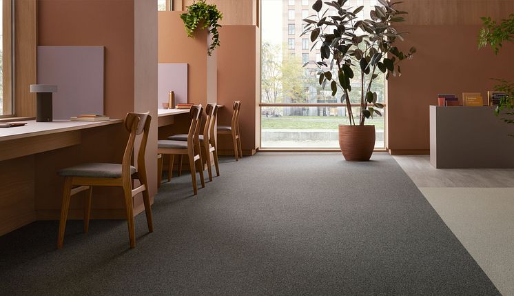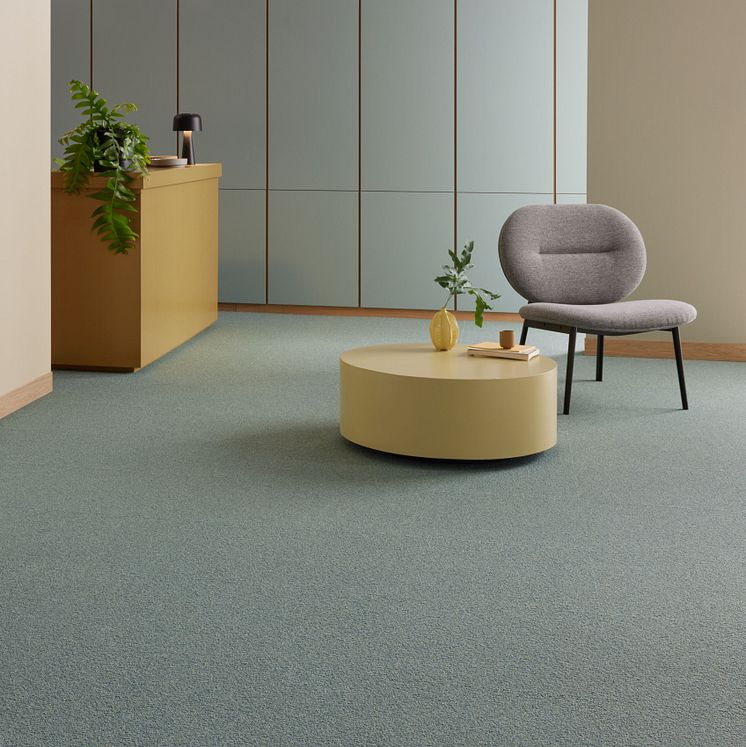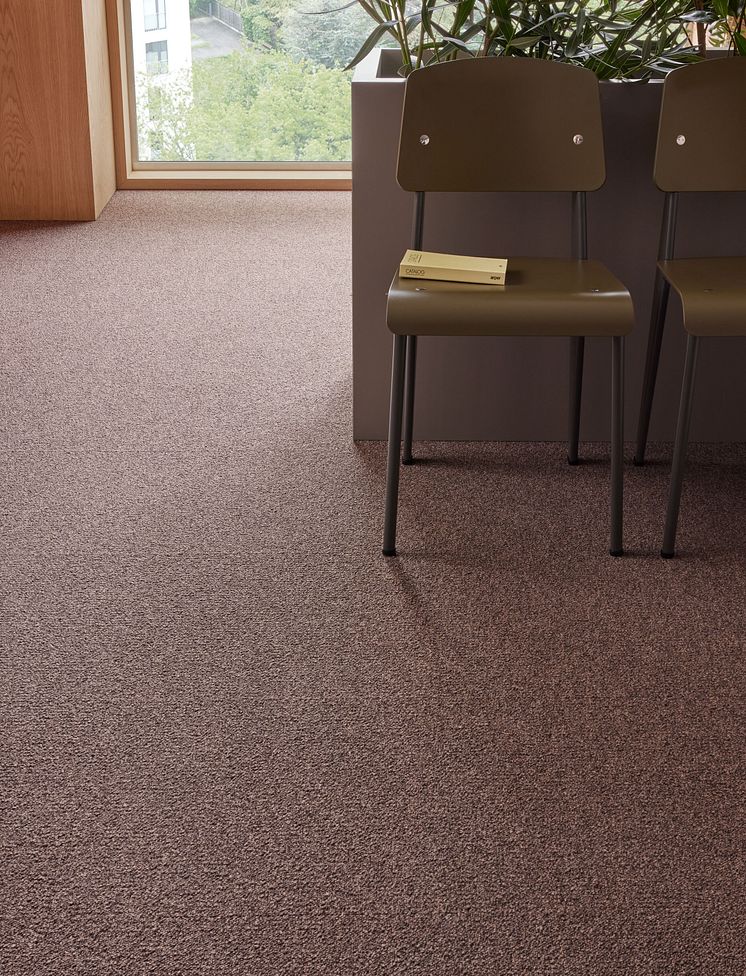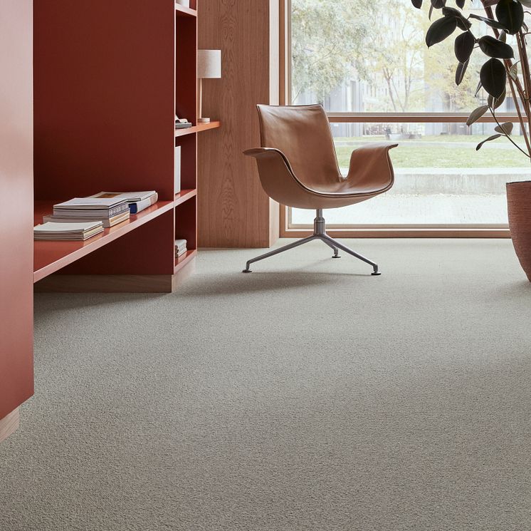 Den myke, men slitesterke løkkeluv-konstruksjonen gir høy komfort og god lyddemping (26 dB), samtidig som den gir interiøret et moderne og profesjonelt uttrykk.