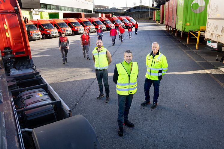 Foran fra venstre: Postens Alexander Franke, innkjøpssjef i Posten Bring, Frode Skallerud, og driftsansvarlig for varebil i Oslo, Carlos Jacobsen.