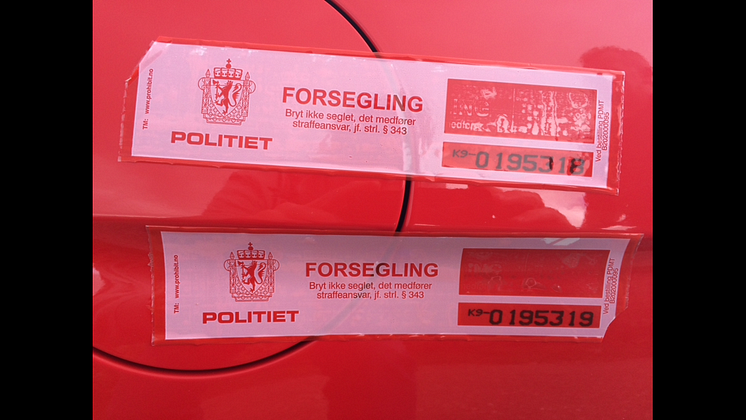 Knut og Henrik satte verdensrekord med sportsbilikonet Ford Mustang. Her ved Polarsirkelen før avreise hvor politiet forsegler drivstofftanken