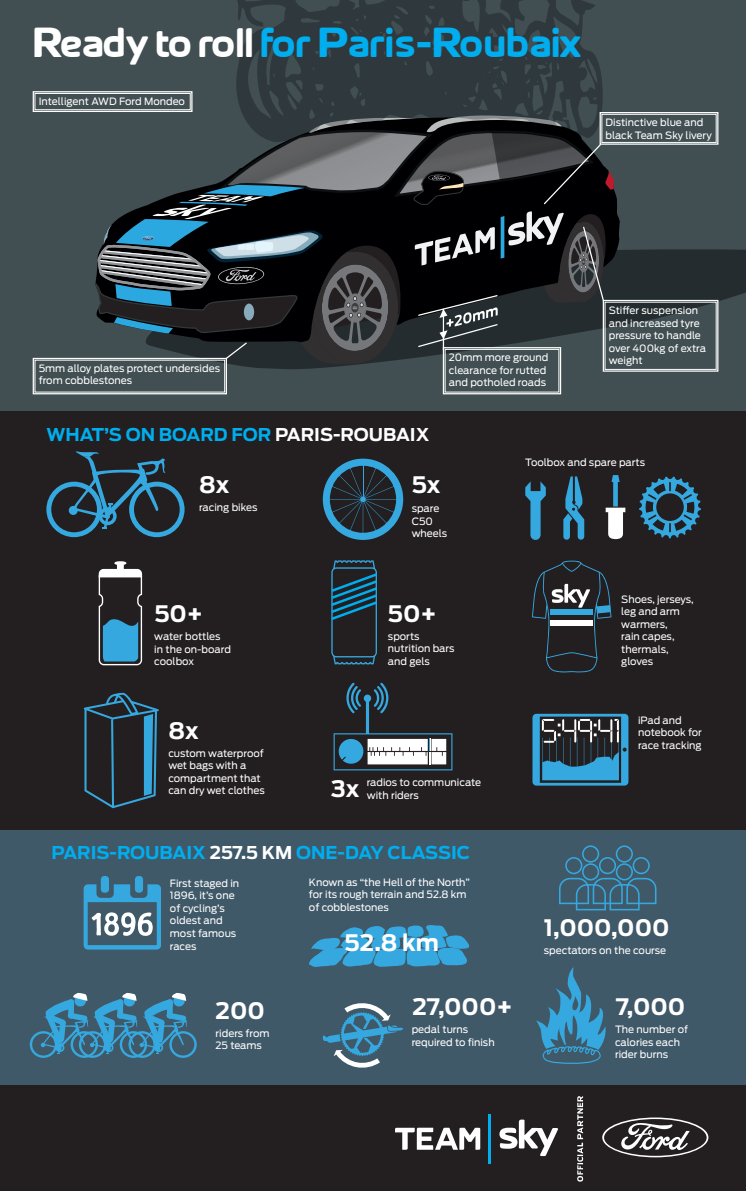 Tøft testregime gjør Team Skys Ford Mondeo følgebiler klar for sykkelløpet “Helvete i Nord"