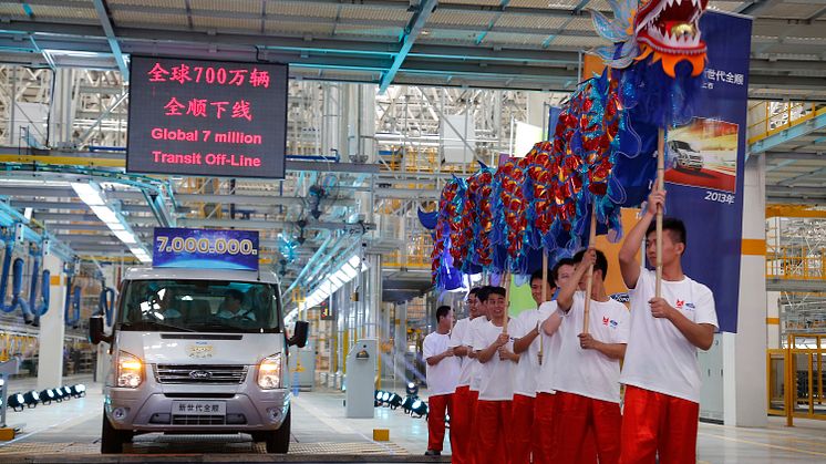 Markeringen av Transit nr. 7 millioner fant sted i den nye Transit-fabrikken i Nanchang, Kina, der også Ford Motor Company’s adm. direktør Alan Mulally var tilstede. Produksjonen av Transit har akselerert etter at den første millionen ble passert i 1976, med en ny million i henholdsvis 1985, 1994, 2000, 2005 og 2010.