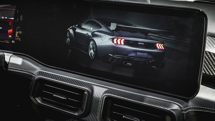 Med Mustang GTD blir også den banebrytende softwaren i nye Mustang ytterligere forbedret. Spillteknologien fra Unreal Engine forsyner SYNC4 infotainment-systemet med grafikk både på den 13,2 tommers store berøringsskjermen og det 12,4 tommers konfigurerbare instrumentpanelet. Hver av de seks kjøremodusene viser en Mustang GTD, mens et nytt Performance-tema i instrumentpanelet plasserer girindikator og turteller i sentrum og fjerner all annen overflødig informasjon. Mustang GTD-eiere kan også enkelt lage sin egen Mustang GTD avatar på My Mustang-siden.
