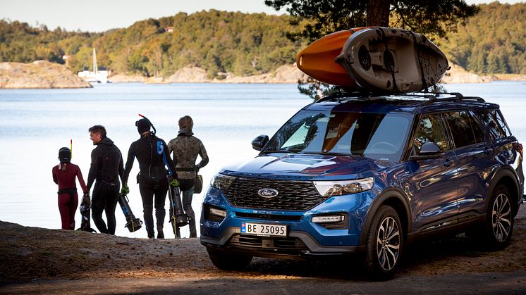 Ford har flere modeller som er godt egnet til bruk for naturopplevelser litt utenfor allfarvei. Både den nye 7-seters Ford Explorer ladbar hybrid og den nye hybrid kompakt SUV-en For Puma tåler dårlig veistandard svært godt, og har kjøremodus tilpasset dette. Med Puma får du til og med et eget drenerbart bagasjerom, Megabox, hvor møkkete fjellsko og svett tøy kan legges. Nye Ford Kuga er også en SUV som trives godt og er tilpasset aktiv bruk i naturen. Og dersom du virkelig skal ut på dårlige veier og med mye utstyr, er selvsagt Ford Ranger eller Ranger Raptor et svært godt alternativ for turen.