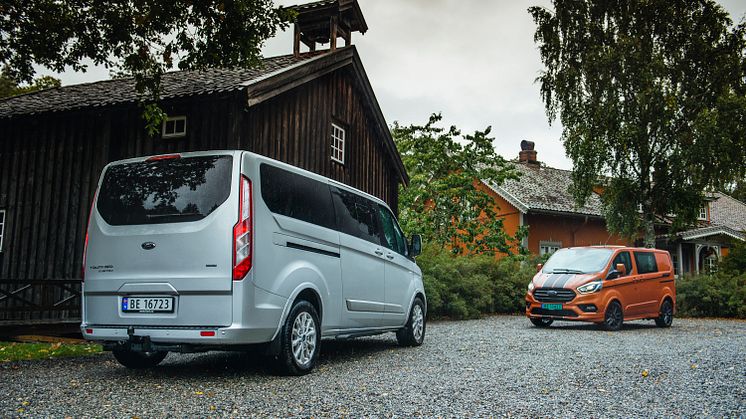 Også en mild hybridvariant vil bli tilgjengelig på 2-tonns Transit, Transit Custom og Tourneo Custom. 8-seteren Tourneo Custom kommer som ladbar hybrid med en rekkevidde på inntil 50 km (NEDC).