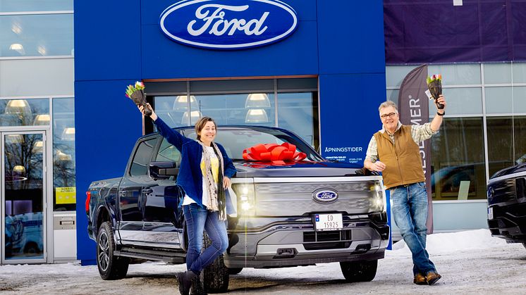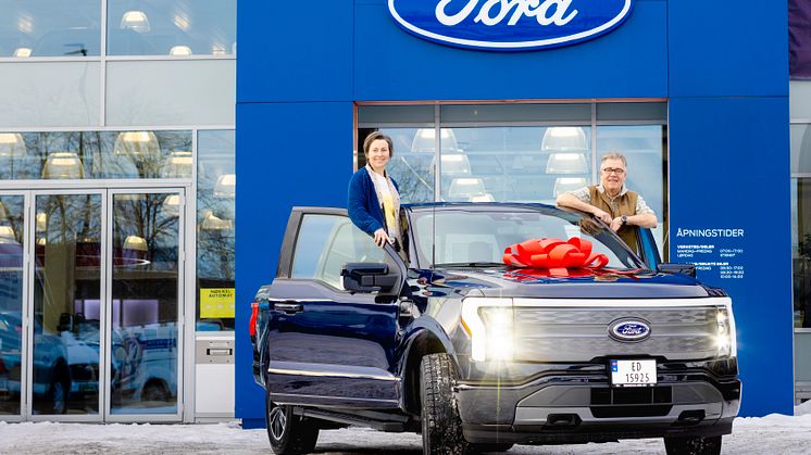 I dag fikk den første kunden i Norge overlevert sin nye helelektriske 5-seters F-150 Lightning fra Ford. Dette er drømmebilen for alle som elsker pickup, USA og vil ha med hele familien på tur, sier en storfornøyd Dag Ødegaard fra Lier.