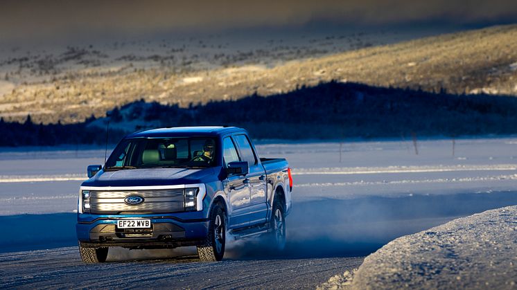 Den nye helelektriske pickupen er hele 5,91 meter lang og 2,44 meter bred. F-150 Lightning har også en nyttelastkapasitet på 535 kg* og maksimal tilhengervekt på 3490 kg*. Med firehjulstrekk som standard, et uavhengig bakhjulsoppheng og lavt tyngdepunkt er både fremkommeligheten og kjøreegenskapene svært gode, uavhengig av vær- og kjøreforhold. 0 - 100 går unna på under 5 sekunder.