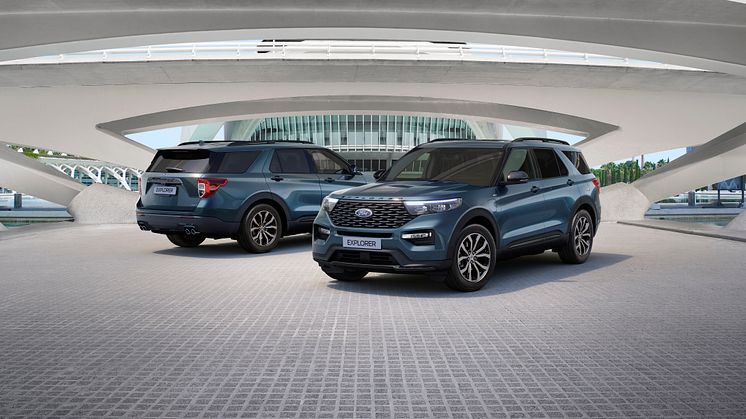 Nye Ford Explorer ladbar hybrid tilbys i to svært godt utstyrte varianter, begge med Fords avanserte firehjulstrekksystem: