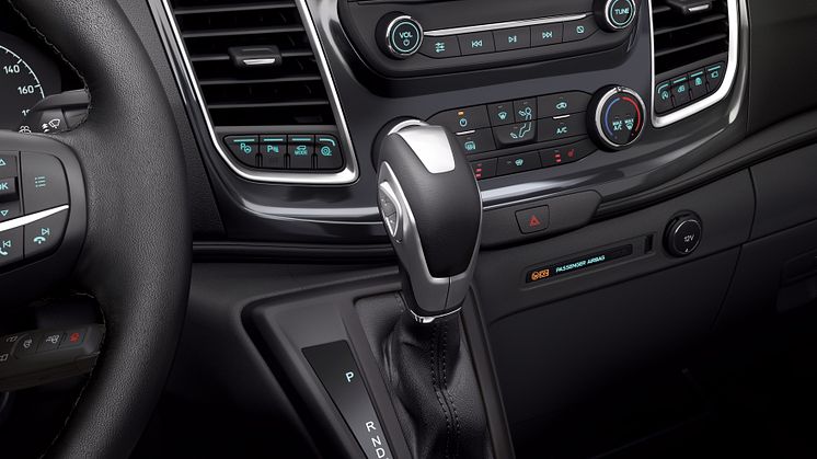 Ved hjelp av Fords patenterte Casting-Integrated Direct Action Solenoid (CIDAS) får du raskere og jevnere girskifter. Automatgirkassen er også tilpasset kjørekarakteristikkene til 2T-Transit. Sammen med Auto Start-Stopp-teknologien og 20 andre patenterte teknologier skal de tilsammen gi deg best mulig drivstoffeffektivitet, bedre komfort og optimale kjøreegenskaper.