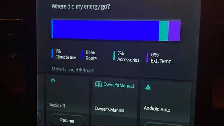 – Vi startet med tøffe forhold ut fra Trondheim med en klatring opp til rutas høyeste punkt på 733 meter. Deretter ble vi stående stille i fem timer på grunn av en trafikkulykke. Med to minusgrader i lufta var det en svært kjølig opplevelse. Men etter det gikk det greit. Dette er en fantastisk elbil som helt sikkert vil kunne kjøres enda lengre under ideelle temperaturer sommerstid, sier Knut Wilthil.