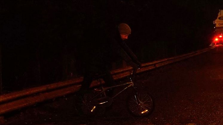 Unike bilder viser hvordan billysene har gitt sjåfører bedre sikt de siste hundre årene. I stummende mørke triller en mann en sykkel over veien. Det var det ikke like lett å få med seg i 1908!