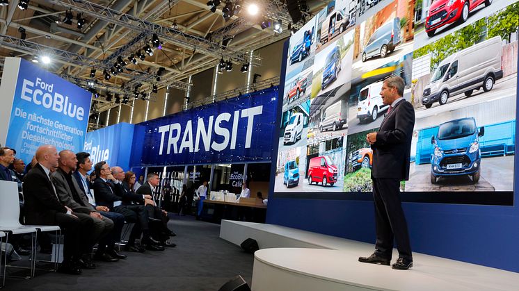 Den nye supergjerrige og mer trekkvillige Ford EcoBlue dieselmotoren hadde i dag premiere på verdens viktigste messe for nyttekjøretøy, IAA i Hannover.