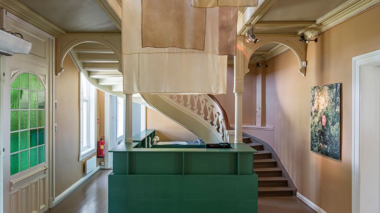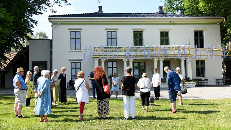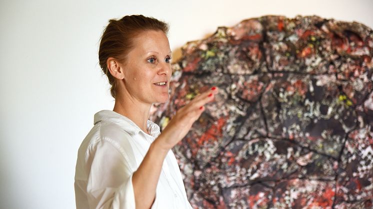 • Randi Grov Berger presenterer Paradise II (Fractured) av Pekka Paikkari under en omvisning på åpningsdagen.