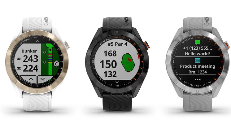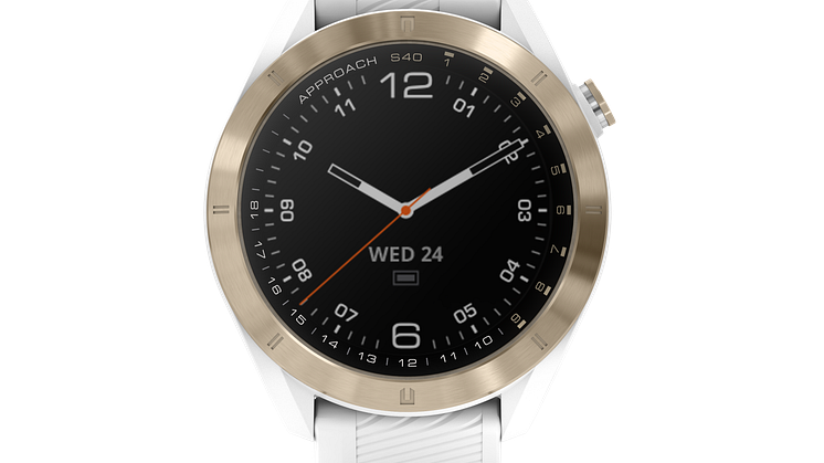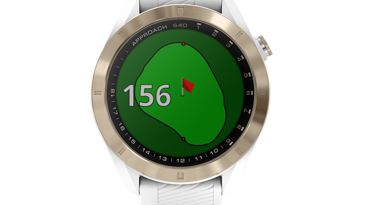 Garmin presenterer Approach S40 – en allsidig GPS-golfklokke som passer både på golfbanen og til hverdagsbruk. Den stilige klokken leveres i Basic Grey, Premium Black eller Premium White med en metallring i sølv, sort eller gullfarge. Berøringsskjermen i farger på 1,2 tommer er tydelig lesbar selv i sterkt sollys. Hurtigutløsningsremmer gjør det enkelt å skifte rem for å skreddersy klokken etter personlig stil. Det finnes ett rikt utvalg av ulike remmer som selges som tilbehør.
