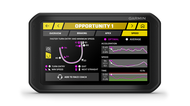 Garmin presenterer i dag Garmin Catalyst, et banebrytende verktøy for coaching i sanntid for racingsjåføren som ønsker å optimalisere kjøringen. Catalyst kan ikke sammenlignes med andre GPS-laptimere eller datasystemer, dette er den første enheten fra Garmin som er utviklet for å optimalisere kjøreprestasjon for racingsjåføren. Catalyst monteres i cocpit1 på racingbilen for å samle inn prestasjonsdata og leveres med stemmestyring for å hjelpe sjåføren til å nå sitt fulle potensiale ute på banen. Når runden er kjørt gir Catalyst en analyse på skjermen med informasjon om hvor på banen sjåføren kan spare tid. Det kreves ikke tid til nedlasting av data, man behøver heller ikke konfigurere grafer eller bruke tid på å laste inn data manuelt. Coachingen man får underveis på banen, samt dataen som automatisk leveres etter runden, er til hjelp for å optimalisere kjøringen og kan benyttes av sjåfører på alle nivåer.