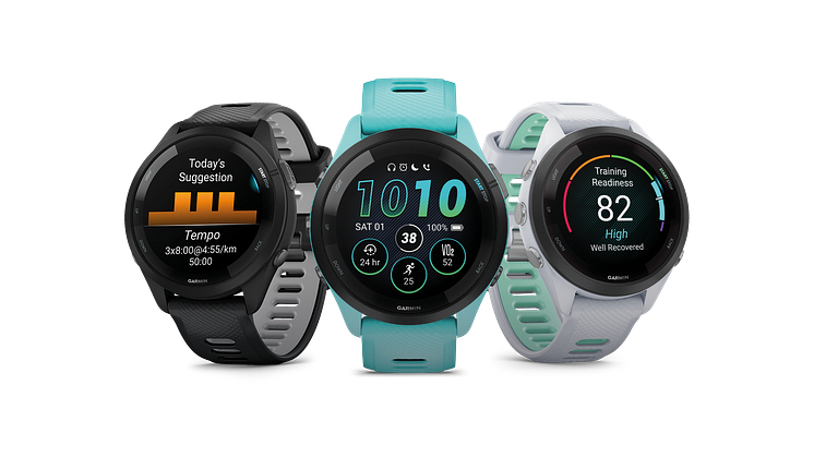 Garmin lanserer i dag Forerunner® 265 og Forerunner 965 som sine første dedikerte GPS-smartklokker for løping i Forerunner-serien med krystallklare AMOLED-skjermer. Klokkene er utviklet i lettvektsmaterialer, har lang batterikapasitet og er beregnet for bruk i alle værforhold. Med responsive berøringsskjermer kompletteres Garmins tradisjonelle design med fem knapper. Programvaren i klokkene er brukervennlig, og det er enkelt å se data som daglig helsestatus, aktivitetstatistikk, smartvarsler fra mobilen og mer.
