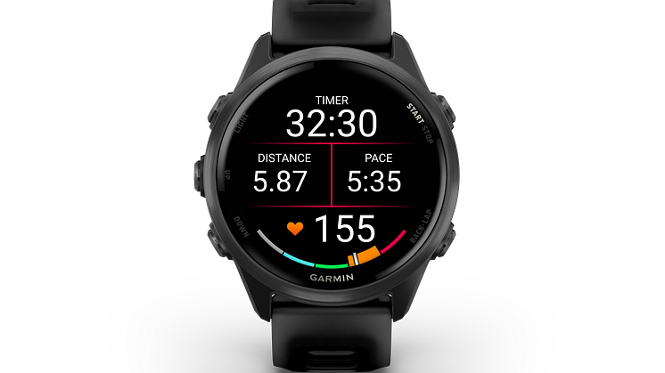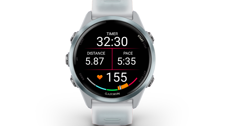 - Garmins mest lyssterke smartklokkeskjerm hittil: En krystallklar AMOLED-fargeberøringsskjerm og et spesialbygd design med 5 knapper gir rask tilgang til avanserte treningsverktøy i all slags vær, daglig helsestatistikk og smartvarsler.