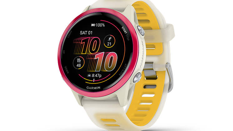 Forerunner 570 er tilgjengelig i to størrelser – 42 mm og 47 mm – med en aluminiumsbesel og flere nye farger.