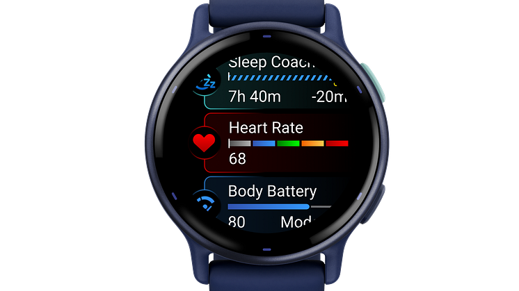 - Start dagen med en morgenrapport som gir deg en oversikt over hvordan du har sovet om natten, samt behovet for restitusjon, HRV-status og værdata (når smartklokken er paret med en kompatibel smarttelefon)2.