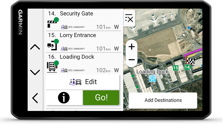 «Den nyeste dēzl LGV-serien er i tråd med Garmins forpliktelse til å gjøre livet enklere for lastebilsjåfører. Ved å utnytte dēzl-fellesskapet kan sjåfører koble seg sammen og dele sin innsikt for å hjelpe andre med å enkelt navigere til lasteramper, lastebilinnganger og parkeringsplasser. Å vite på forhånd om et stopp er tomt, overfylt, godt opplyst eller stille, kan hjelpe sjåfører med å reise trygt og effektivt», forteller Dan Bartel hos Garmin.