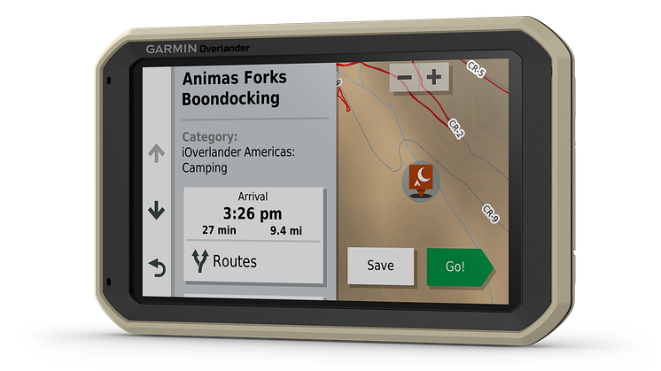 Garmin presenterer Overlander - en robust og allsidig GPS-navigator for navigasjon på veier og i terreng med turn-by-turn anvisning. Overlander leveres med en 7 tommer fargeskjerm, er preprogrammert med kart for hele Europa, Midtøsten, Nord-Afrika og Sør-Afrika, detaljerte Tracks4Africa kart og POI’er for hele det afrikanske kontinentet. Ønsker man å kjøre utenfor veinettet benyttes topografiske kart, via Garmin Explore kan man trådløst overføre spor og veipunkter mellom Overlander, smarttelefon og datamaskin. Navigatoren er også preprogrammert med iOverlander™ som viser punkter av interesse, ACSI™ Campercontact™ samt Trailer's PARK™ slik at man enkelt finner de beste overnattingsstedene.