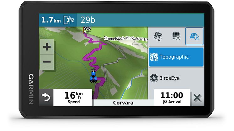 Garmin presenterer zūmo XT, en GPS-motorsykkelnavigator som er utviklet for å hjelpe motorsyklisten med navigering både på og utenfor de tradisjonelle veiene. zūmo XT leveres med en krystallklar, hanskevennlig 5.5-tommer berøringsskjerm med HD-oppløsning. Med et robust design, som er beregnet for å tåle ekstremvær og vanskelig terreng, tåler den nye zūmo XT regn og er klassifisert etter amerikansk militærstandard 810G. Motorsyklisten får med dette en brukervennlig navigasjonsenhet, som med enkle tasttrykk viser veikart, topografiske kart eller BirdsEye satellittbilder. Dette gir en enestående oversikt over planlagt rute.