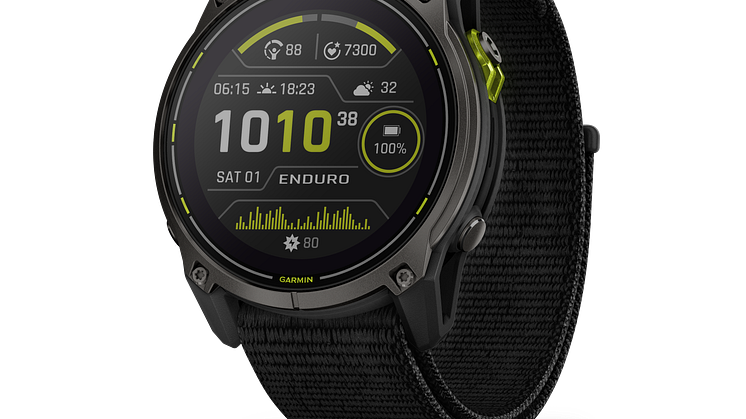 Garmin lanserer Enduro™ 3, neste generasjons GPS-multisportklokke med ultraytelse. Urkassen er lettere enn noen gang og med lengre batterikapasitet enn tidligere med solcellelading, er Enduro 3 bygget for de lengste løpene. Klokken veier bare 63 gram og har batterikapasitet i opptil 320 timer i GPS-modus med solcellelading1 – med en alltid-på-skjerm. Og med premium trenings- og navigasjonsverktøy, som dynamisk rundtursruting, VO2 maks-innsikt under terrengløp, høydejustert tempoveiledning og forhåndslastede TopoActive-kart, er Enduro 3 klar til å hjelpe deg på ditt neste eventyr.