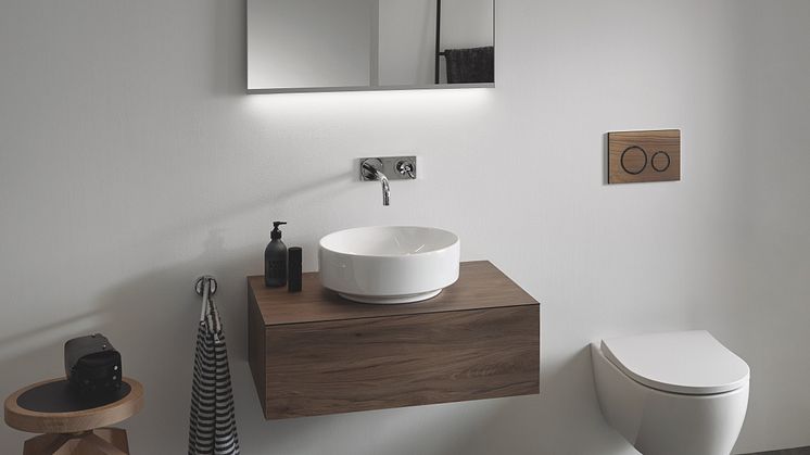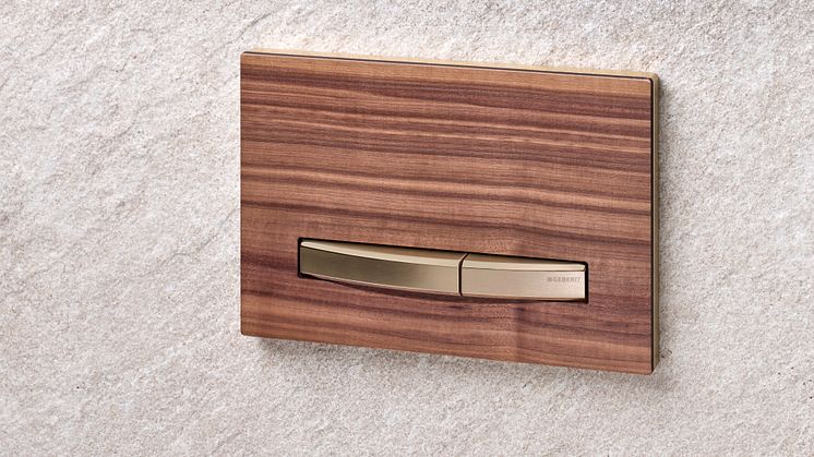 Baderomstilbehør som Geberits betjeningsplate Sigma21 og Sigma50, er også tilgjengelige med trelook. Dette setter prikken over i-en på badet.