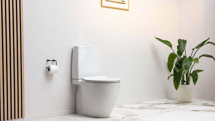 Nytt gulvstående toalett fra Porsgrund med effektiv og stillegående skylling