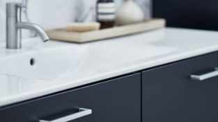 Porsgrund har ulike håndtak og knotter å velge mellom, slik at du kan sette ditt personlige preg på baderommet. Det gjør det også enklere å skape kontrast og endre stil eller uttrykk.