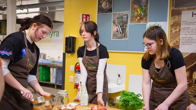 – Jeg liker å lage mat, men sesamdressing har jeg aldri laget før. Stemningen er god når barn og ungdom tropper opp på Geitmyra Ringsaker for å lage middag sammen. På menyen står fiskeburger med rotgrønnsaker, coleslaw og deilige dressinger. Hver onsdag frem til påske arrangerer Geitmyra Ringsaker Åpent på Geitmyra. Og det er nettopp det: Et åpent hus, et åpent kjøkken, åpne voksne og god plass rundt bordet.