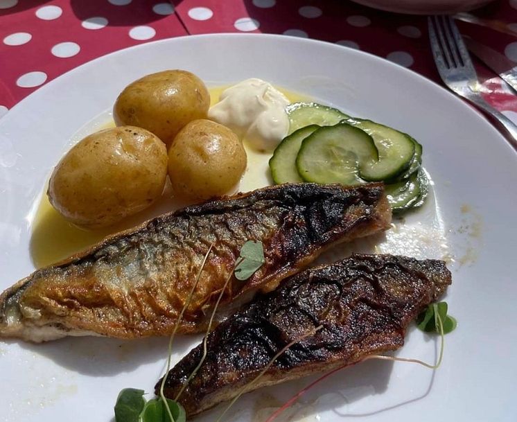 Makrell med nypoteter, agurksalat, rømme og gjøksyre
