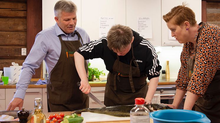 – Klippfisk er skikkelig sexy, sier en av ungdommene fra Vestre Aker. Han lager lunsj på Geitmyra sammen med fiskeriminister Bjørnar Skjæran. Her har sjømat vært en viktig del av undervisningen siden 2011 og barn og ungdom lærer å tilberede – og elske – sjømat.