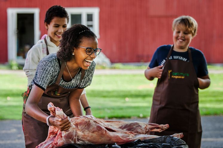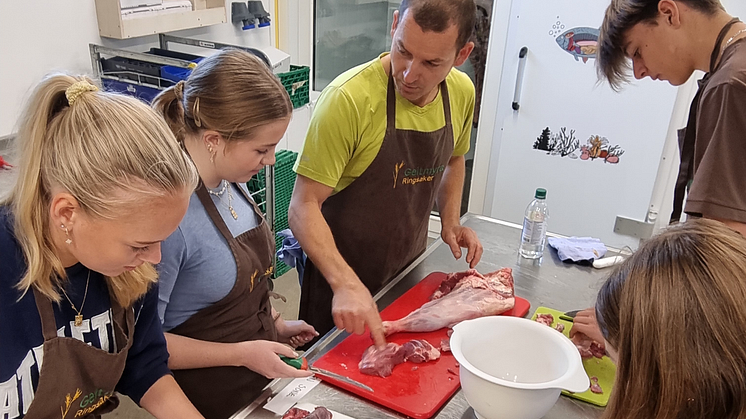 Læring for næring: 9. klasse fra Biri får opplæring i pølsemakerfaget