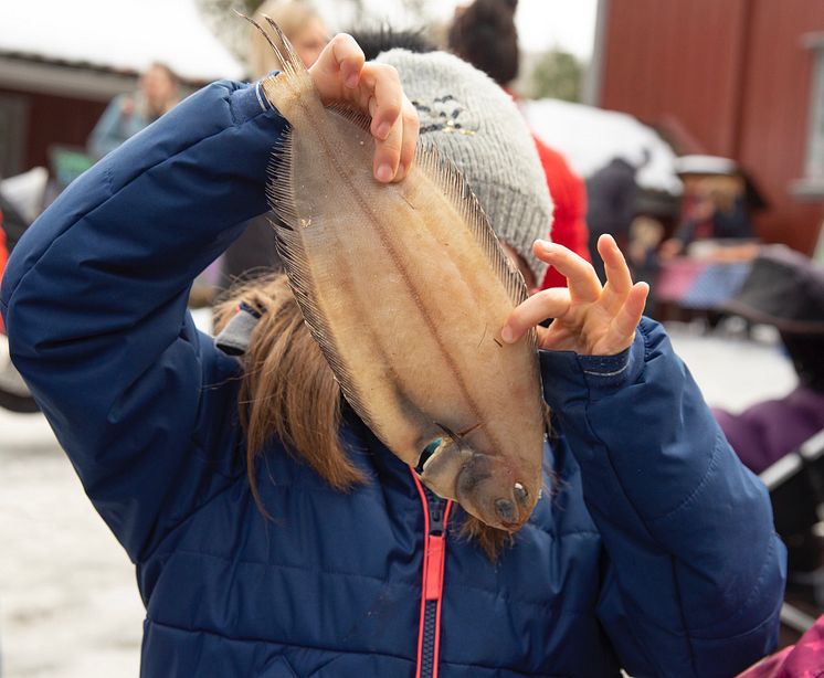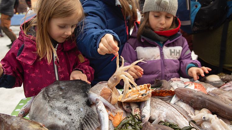 Mange små og store sjømatentusiaster finner veien til et Geitmyra-senter denne lørdagen. På fiskebordet ligger det alt fra sjømus til hai, det er skate, brosme, skrei og rognkjeks. Og mange andre arter. Barna får kjenne på kråkeboller og smake på tangknekkebrød, tangsnacks og sylta tang. De kan også morte sitt eget tangsalt. Mange voksne er glade for at barna endelig kan pille reker selv, etter å ha vært på rekepillekurs på Geitmyra. De lærer også å rense akkar og sjekke blåskjell. Er det trygt å spise dem eller ikke?