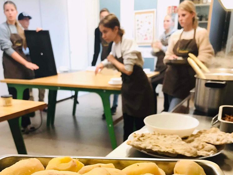 Fredag er det ventet over 900 niendeklassinger som alle skal forme sine egne gnocchi og tilberede dem. – Vi lager gnocchi på kokte poteter for å vise barna hva som er mulig å lage med rester fra middagen dagen før, sier Gyro. På menyen står også deilig potetsuppe. Potetene kommer fra Jølstad Gård. Gnoccideigen og potetsuppen er laget i dagene før, med god hjelp av niendeklassingene ved Furnes ungdomsskole.