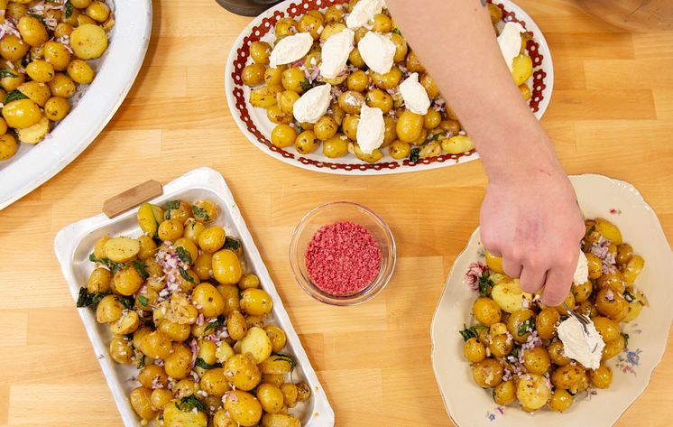 Røkt sik og sikrogn, Geitmyras hjemmelagde pølser og poteter fra Knutstad og Hoel. Det er klart for lansering av vårprogrammet på Geitmyra Ringsaker.
