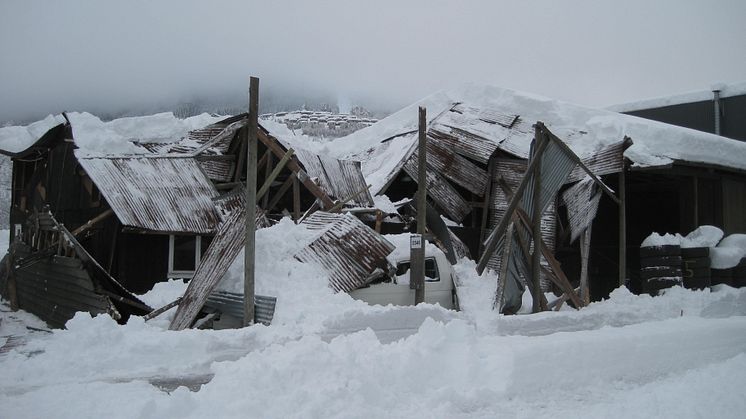Bygning som har kollapset av snøen