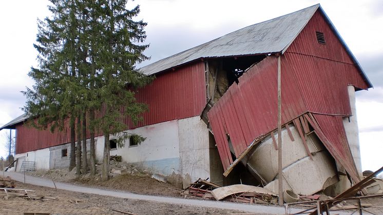 Rampontert låve etter storm
