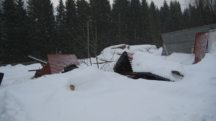 Lager og drifstsbygning med for mye snø på taket