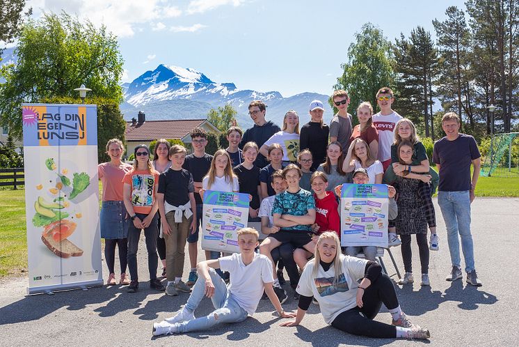 Lag din egen lunsj- oppdrag kostråd: Vinnerlaget «De tre varierte musketerer» fra Møre barne- og ungdomsskole sammen med Herman Dahl og Agnetesh